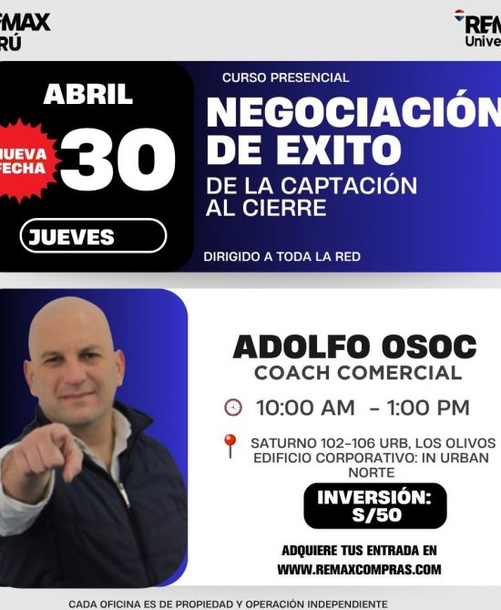 Expositor: Adolfo Osoc, Coach Comercial – CURSO ABIERTO A TODA LA RED